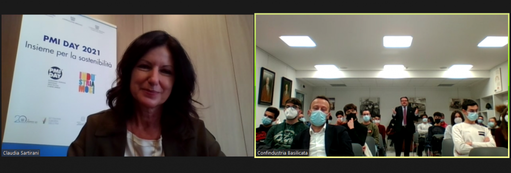 Nel corso della visita aziendale è intervenuta a distanza anche la coordinatrice nazionale del Pmi Day, Claudia Sartirani, che ha spiegato valori e numeri di una grande giornata che coinvolto 400 le imprese, oltre 500 scuole medie e superiori per  45mila studenti.