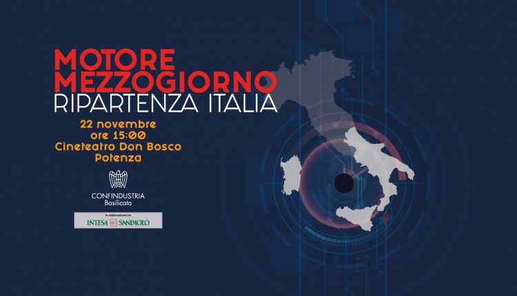 Lunedì 22 novembre si terrà, in presenza, il grande evento di Confindustria Basilicata dal titolo “Motore Mezzogiorno, Ripartenza Italia“, con inizio alle ore 15.00, presso il Cineteatro Don Bosco di Potenza.