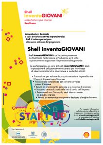 Shell InventaGIOVANI, programma per la Basilicata, di Shell Italia Esplorazione e Produzione è un’iniziativa volta a promuovere e supportare l’imprenditorialità giovanile che mira ad aiutare i giovani di tutto il mondo a valutare se l’avvio di un’attività imprenditoriale possa rappresentare per loro una carriera percorribile e realizzabile.