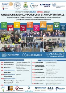 Si svolgerà a Melfi il prossimo 3 aprile la giornata conclusiva del progetto “Creazione e sviluppo di una start up virtuale” portato avanti dall’IIS G Gasparrini di Melfi in collaborazione con il Rotary club di Melfi.