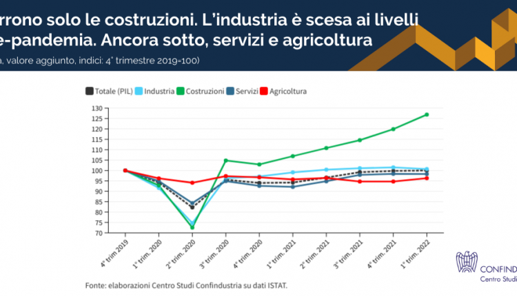 Infografica dal CSC – Nel 1° trimestre 2022 corrono solo le costruzioni. L’industria è scesa ai livelli pre-pandemia
