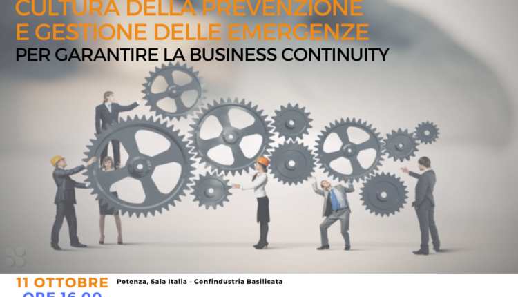 Nell’ambito della quinta settimana nazionale della Protezione Civile, il Comitato Piccola Industria di Confindustria Basilicata promuove l’evento “La cultura della prevenzione e gestione delle emergenze per garantire la business continuity” che si terrà venerdì 11 ottobre, presso la sede di Potenza della confederazione degli industriali lucani, a partire dalle ore 16.
