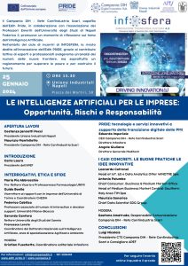 Si trasmette in allegato il programma definitivo del workshop “LE INTELLIGENZE ARTIFICIALI PER LE IMPRESE: Opportunità, Rischi e Responsabilità” che avrà luogo il prossimo 25 gennaio alle ore 15.00 e che si potrà seguire anche in modalità digitale.