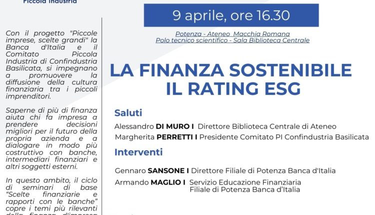I lavori saranno aperti da Alessandro Di Murno, Direttore della Biblioteca Centrale di Ateneo e da Margherita Perretti, Presidente del Comitato Piccola Industria. Gli interventi saranno curati da Gennaro Sansone, Direttore della filiale di Potenza della Banca d’Italia e Armando Maglio, Servizio educazione finanziaria della filiale di Potenza di Banca d’Italia.