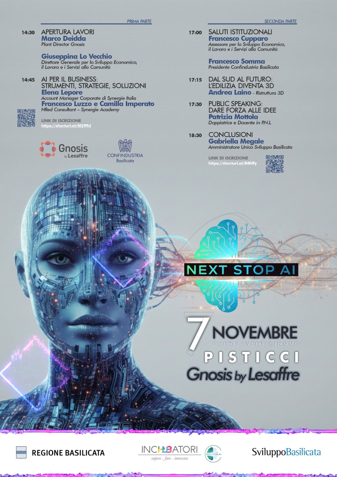 si svolgerà venerdì 7 novembre, presso la Gnosis By Lesaffre di Pisticci (MT), il secondo appuntamento di INCHUBATORI: Next stop AI. Una giornata di formazione per studenti, imprese e professionisti, due corsi, un unico obiettivo: rafforzare competenze e favorire l’innovazione!