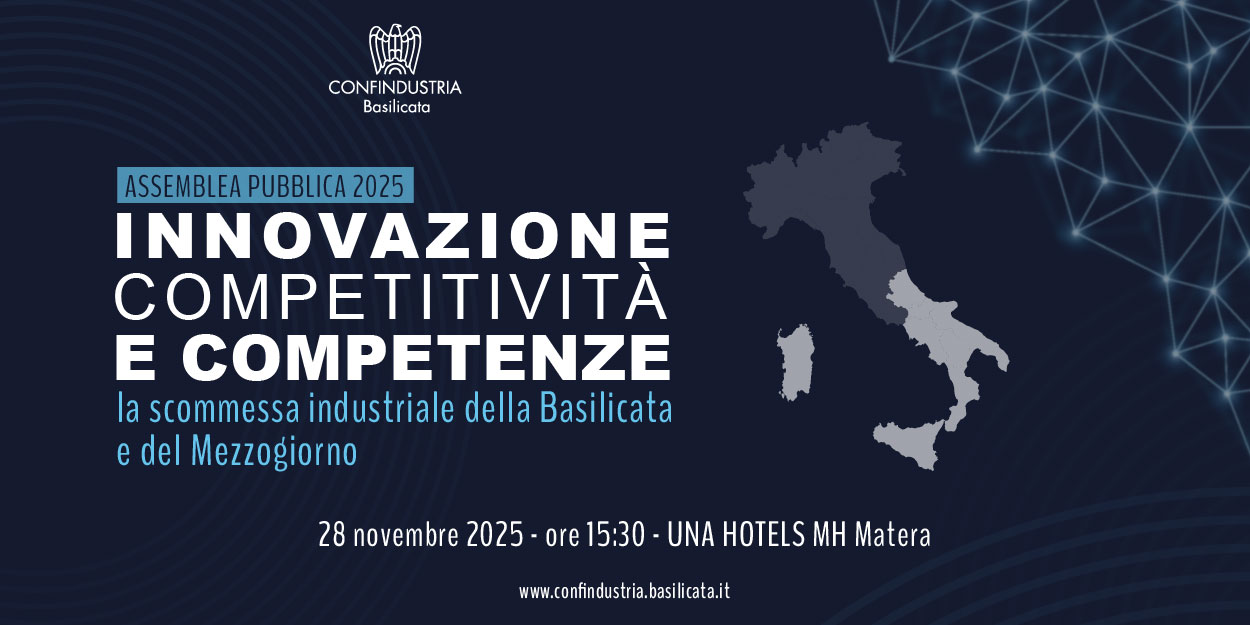 si inoltra, di seguito, il programma dei lavori dell’Assemblea Pubblica di Confindustria Basilicata che si terrà il prossimo 28 novembre, a Matera: