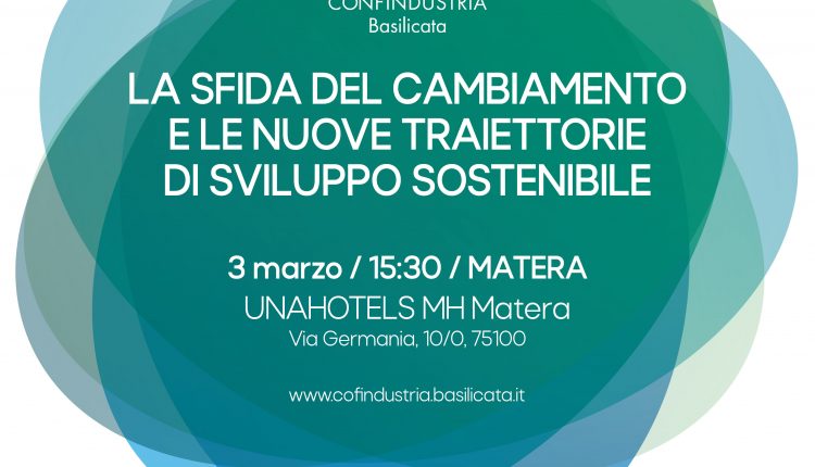 “La sfida del cambiamento e le nuove traiettorie di sviluppo sostenibile” è il titolo della convention che si terrà a Matera, venerdì 3 marzo, a partire dalle ore 15.30.